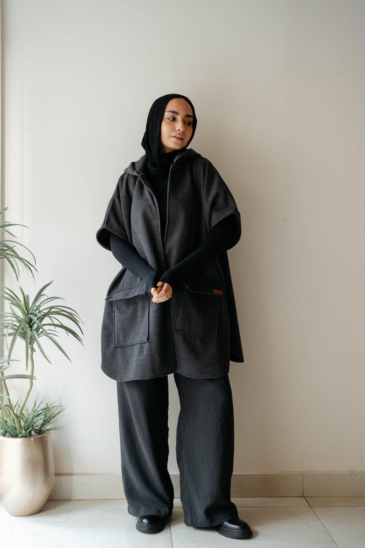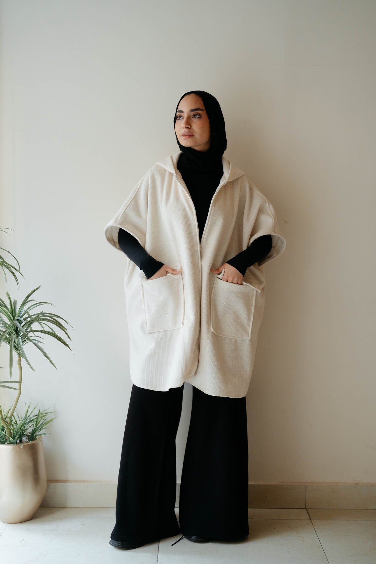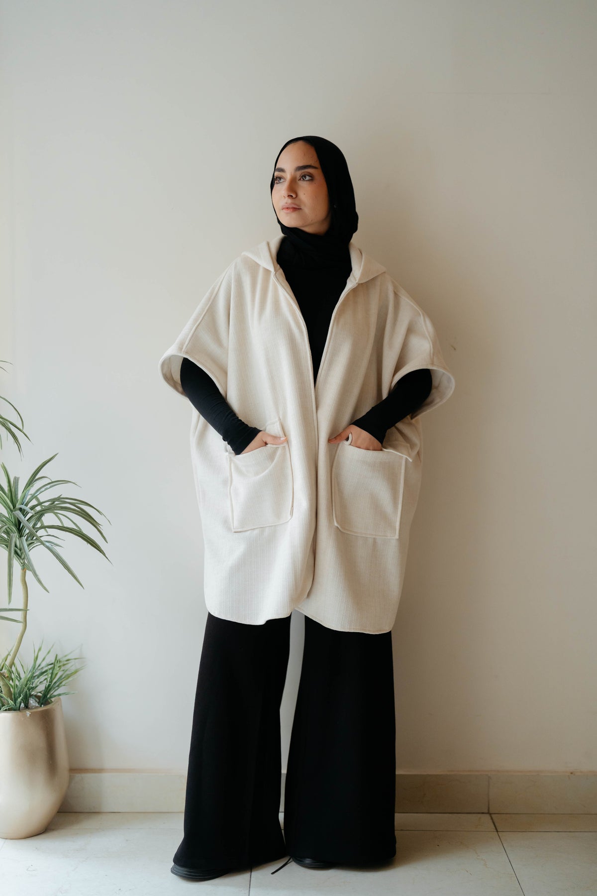 Elevate your layering game with this sophisticated hooded vest crafted from premium wool. The structured design provides exceptional warmth and breathability, making it an ideal choice for transitional seasons or as a versatile base layer. Two functional pockets offer practical storage for essentials while maintaining a clean silhouette. The hood adds an extra dimension of protection and contemporary style, while the wool fabric ensures durability and natural temperature regulation. Perfect for both casual and refined settings.